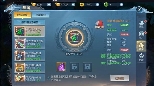 10、套装:等级达到240级以上的少侠可进行套装锻造,锻造套装不同部位需使用对应部位的套装石,集齐2件、4件或6件混元套装,或是奔雷套装,都能获得丰厚的属性加成。