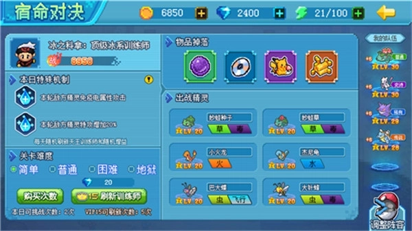 宿命对局,另一种超好玩的竞技玩法。玩家可以自由搭配精灵队伍,在这里挑战训练师,加深自己对精灵的理解,也可以获得额外的物资奖励,更好的培养自己的精灵!