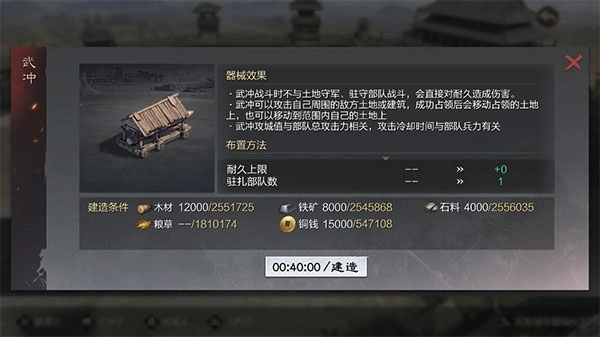 可以无损翻地。武冲需要先占领9格地进行布置,由部队使用。使用时会以10分钟每次的频率消耗地块耐久。布置以后无法继续向下一地块前进,想前进还得占9块地。