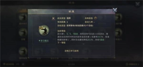 2、关于战法的选择,大营可搭配先驱、温酒斩将这类常规内战法,主动类战法则可选用一骑、折戟、人中吕布等;若中军均为弓兵,可携带S2鹤翼,要是全是女武将就选择美人计,没有美人计的话也能用桃园结义替代,而常见的中军战法通常有桃园结义、落雷、大火、大水、浑水等。