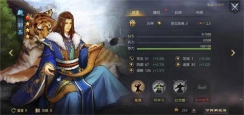 第四步,开启统帅功能后,让所有开荒武将一同上阵,注意最后一位武将暂时不要征兵,直接连续攻打三级地来提升等级即可,一直打到前两位武将体力耗尽,之后再把兵力征满,为开启四级地做准备。