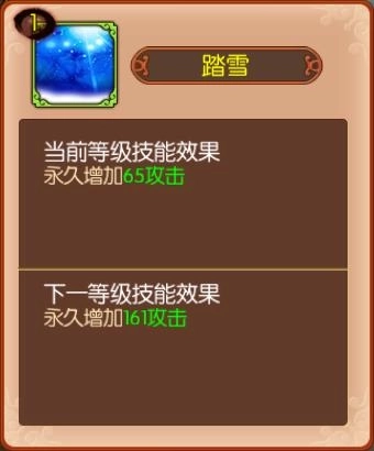 5、踏雪(辅助技能):可以增加很多攻击,配合主技能炉火纯青可以在前期打出一定的伤害。