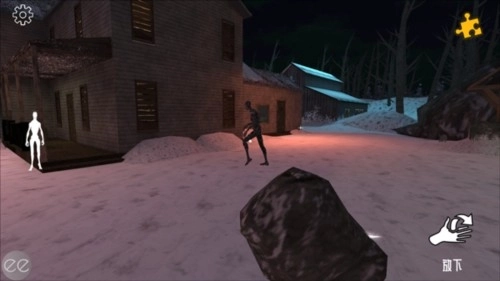5、首先来到旁边的雪地上,捡起地上的石头;