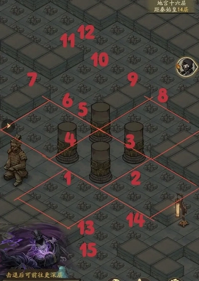 3、如图:1区域出了3*3怪,可探索13位置,13位置出了3*3怪,可探索15位置。