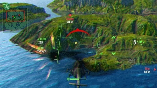 4、海上还会有许多敌军飞机对你发动攻击,你能够借助左上角的地图查看其他飞机的位置。