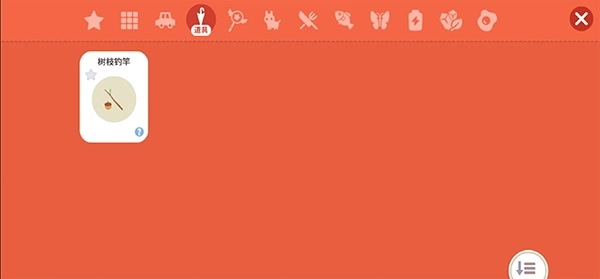 5、打开右下角的背包,进入道具界面,把树枝鱼钩装备好;
