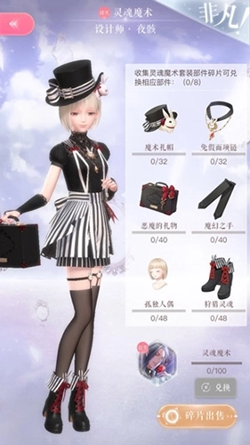 1、玩法规则:每日挑战设计师之影【夜骸】可以获得兑换碎片,收集这些碎片即可兑换本期主题套装【灵魂魔术】。