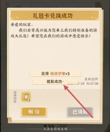 5、最后打开邮箱就能成功领取所兑换的奖励了。