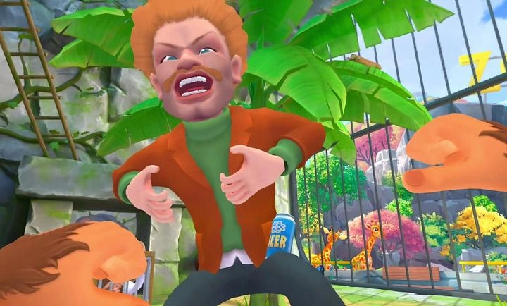 2、游戏配备了由物理驱动的沉浸式交互系统,玩家能够进行攀爬、投掷香蕉等操作,甚至还可以悄悄拿走游客手里的物品。