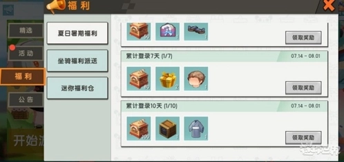 小编刚才说的夏日暑期福利,是每天登录都能领大礼包和迷你宝盒,而且每天赠送的装扮或道具都不一样哦——比如累计登录三天送珍珠奶茶,七天送栗子短卷定制装扮,十天送暮色深深定制装扮,大家可千万别错过啦!