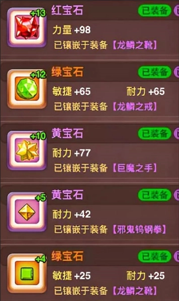 可以分为橙宝石、绿宝石和紫宝石三类。其中,橙宝石能够增强力量与耐力属性,绿宝石可提升敏捷和耐力属性,紫宝石则对力量和敏捷属性有增益效果。