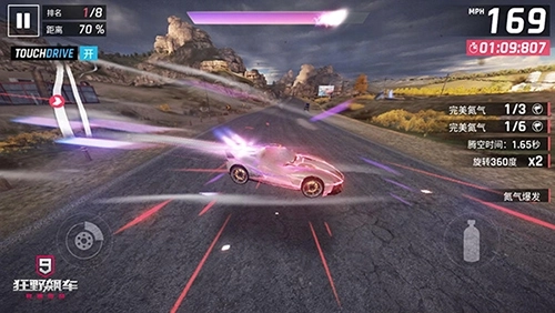 狂飙里的漂移还有重力感应,这个操作有点难,一个不好,各种乱撞,画面会非常难看。