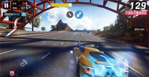 触屏转向相当于自己开车,按下刹车然后转向就会自动漂移,控制好力度和方向就行。