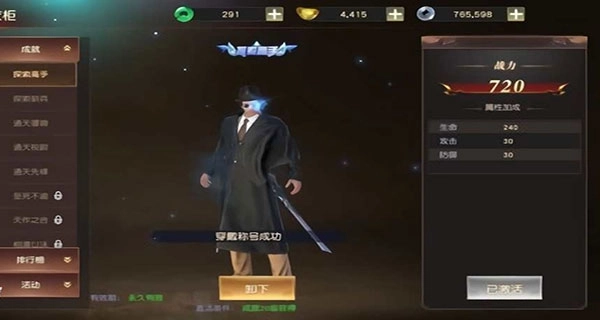 在称号系统界面,我们可以看到自己已经有的各种称号,没有激活的称号也可以在这个界面看到。此外,在这个界面我们还可以对称号进行激活,以及穿戴称号的操作,穿戴称号之后将可以看到称号所提供的属性加成。