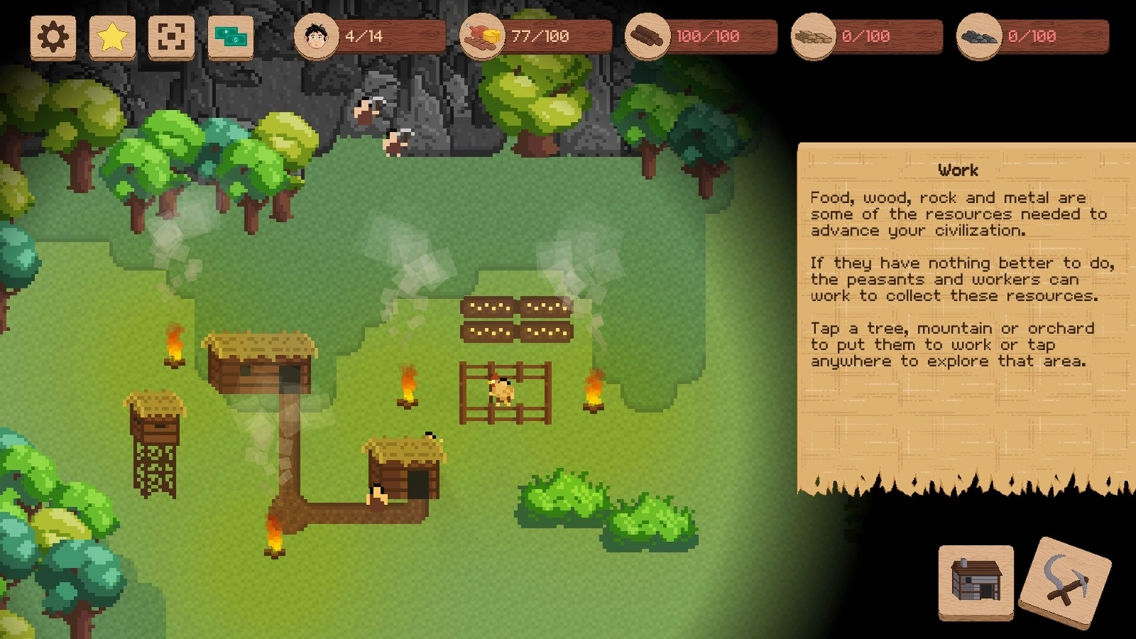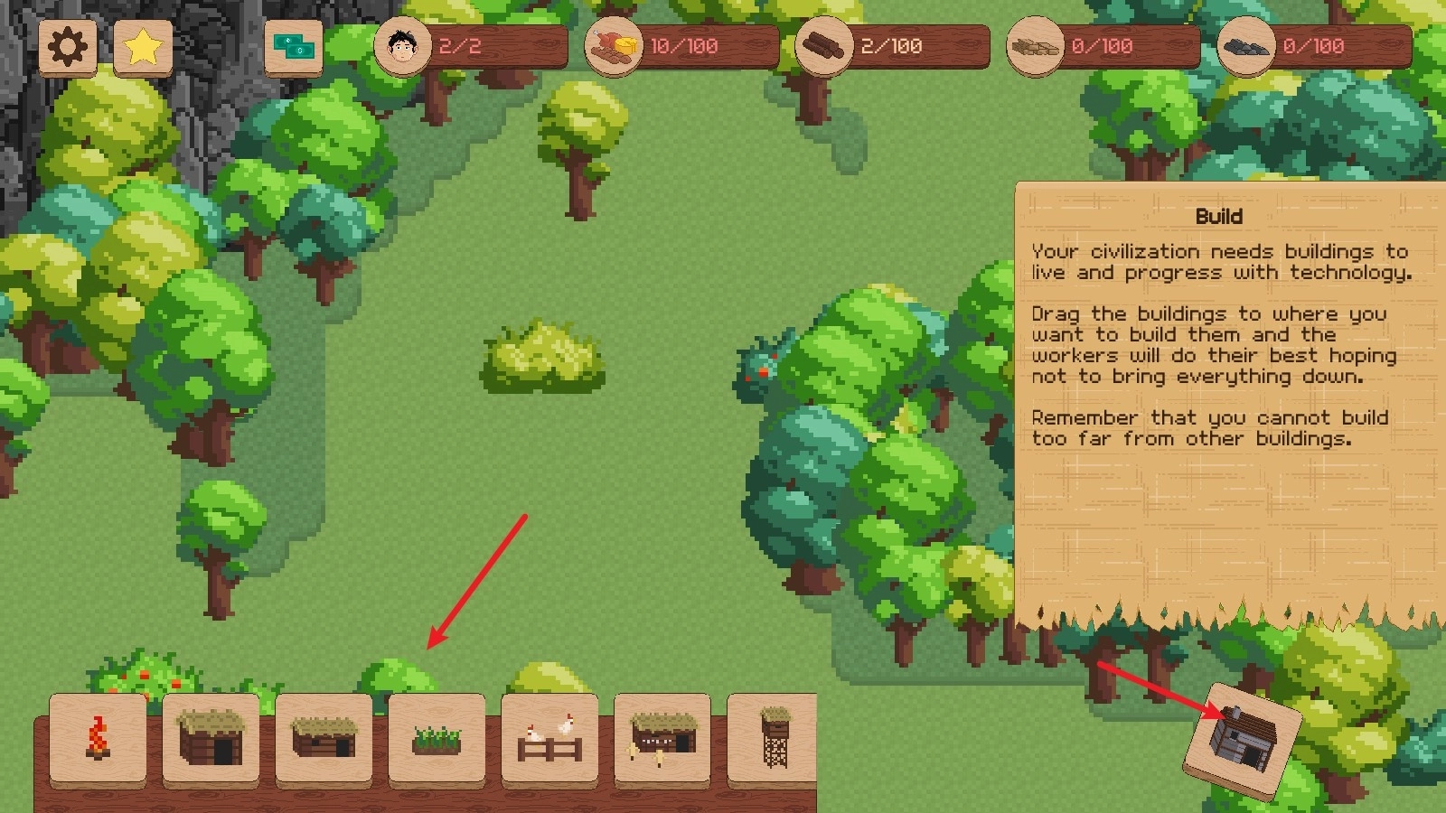 6、等木材储备充足后,我们就可以着手搭建第一座小屋,如此一来便能容纳更多人口了。