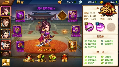 5、对部分功能的开启条件进行了调整,其中阵法功能调整为75级开启,历代名将功能调整为95级开启