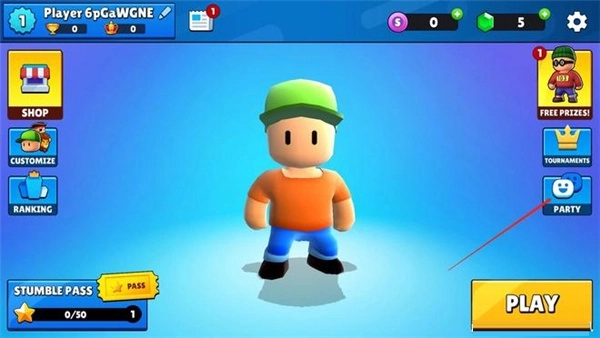 4、点击右侧的PARTY按钮进入多人模式,在这里你既可以自行创建房间,也能通过输入好友分享的房间代码来加入对应的房间。