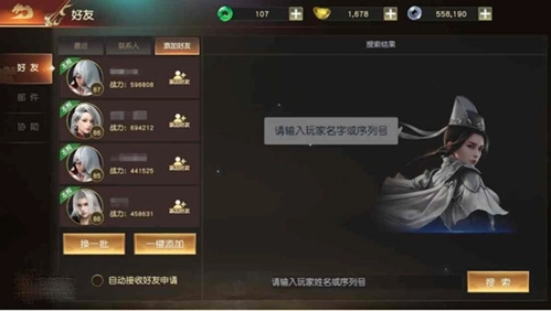 2、要是不想逐个添加,直接点击下方的【一键添加】按钮,就能把系统推荐的一批玩家全部加为好友。要是没有满意的,就点击下方的【换一批】按钮,刷新系统推荐的好友玩家即可。