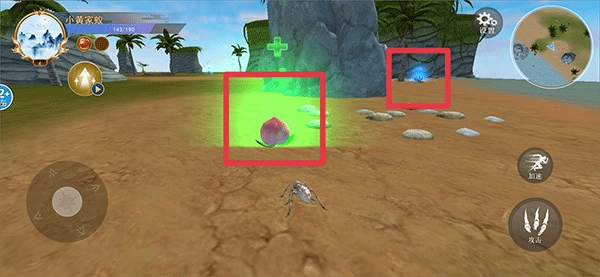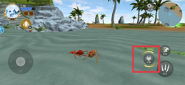 1、进入游戏后,用左侧摇杆操控蜘蛛移动到猎物附近,再点击攻击按钮完成猎杀。