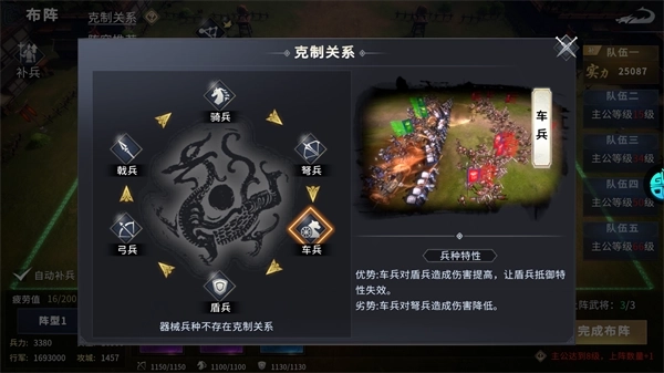 优势:车兵对盾兵造成伤害提高,让盾兵抵御特性失效。