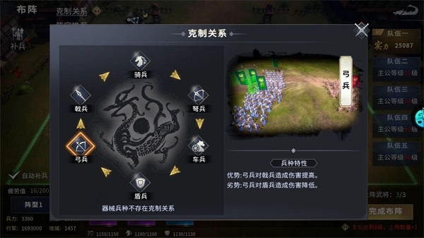 (2)佩戴同前缀名称的战策达到一定数量能够激活连携效果,可以着重强化部队在前、中、后期三个阶段的战斗强度。运用“田忌赛马”的思想与对方主公进行博弈,既是以弱胜强的机会,也是克敌制胜的法宝。