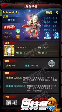 1、多样的角色选择:在奥特曼系列OL游戏里,有众多经典的奥特曼角色可供玩家挑选,大家能培养并操控自己心仪的英雄参与战斗。