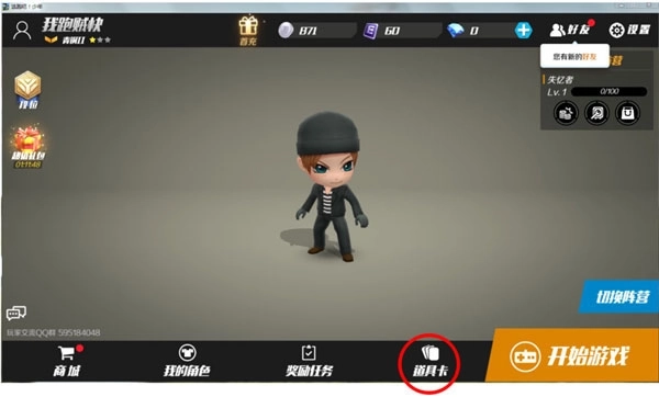 1、道具卡的选择与更换能够在两个界面进行操作,其中第一个界面是游戏主界面。
