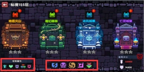 在选择每层关卡的属性图时,系统会展示当前层数的怪物详情和对应的词条增益效果,各位进入秘境前务必仔细留意!通过左下角的怪物属性面板,能查看其护甲值与抗暴值,大家可据此搭配相应的护甲穿透和暴击属性来参与秘境挑战!
