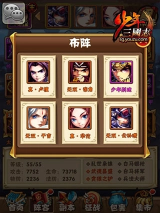 下面我推荐几个前期阵容:(前期不用太过分考虑橙将,组合技和缘分才是王道,在我看来满缘的紫将是不弱于俩三缘橙将的)
