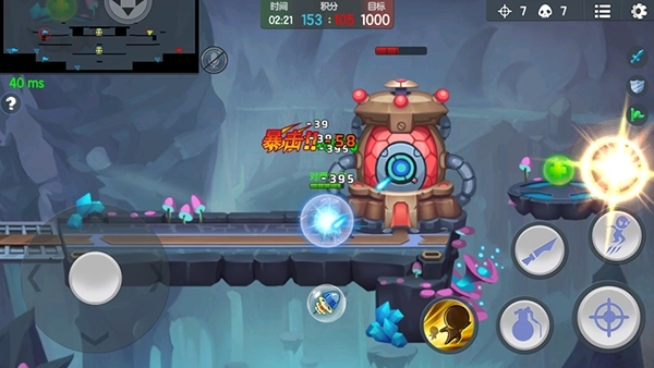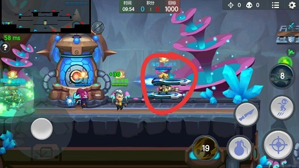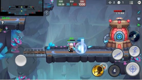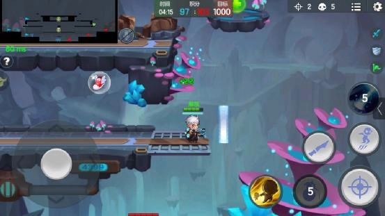进入该模式后,我们可以看到左上角的小地图,从上至下共有三层,标有紫色图形的地方为水晶矿的所在位置。玩家从地图左右两边出发,搜集水晶积分,地图中间的大水晶积分相对较高。
