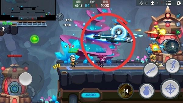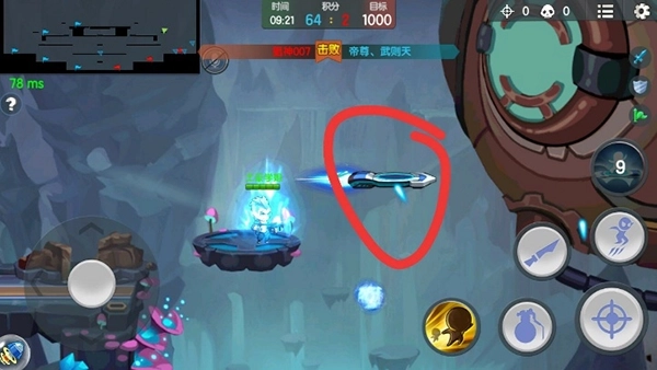 4、单排的情况下,不要想着去顶防御塔的伤害,未来守护者本身血量很少很容易被抓死,那么走路需要更长的时间。开启加速之门伤害范围可以比女警广,所以,在拿到两个塔之后我们在这个位置开启主动,防御塔的位置大概是小刀那里,一直射击,有人来了也别慌,只要小心眩晕在占据地形优势的情况下,没有一炮杀不了的人,如果有就是两炮!当然,像王牌飞行员这样灵活的还是跑比较好。