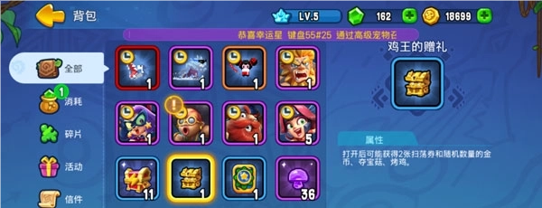 玩家在背包中可查看自己拥有的碎片、消耗等道具,其中的时效宠物以及时效英雄只能使用一定的时间,但仍旧可以进行英雄觉醒。等到下次使用该英雄后会继承上次的觉醒星级,因此玩家尽管放心培养自己心仪的英雄吧!
