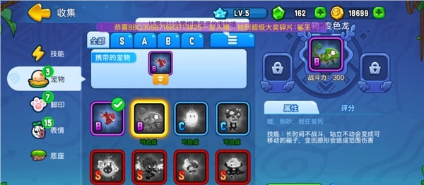 技能和宠物直接决定着英雄的战斗力,分为c~s级,通常越稀有的技能、宠物其碎片的获取难度越大。在集齐碎片后,玩家还需要消耗一定的金币进行合成。