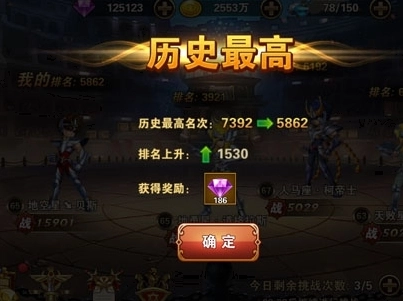 每一次排名突破都能够获得一定数量的钻石奖励,达到的排名越高,突破奖励也越丰厚,积累下来也将是一笔不小的收获哦~