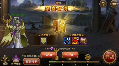 1、玩家等级达到30级时可以参与“守护雅典娜”,只有等级达到15级的圣斗士才能参战;