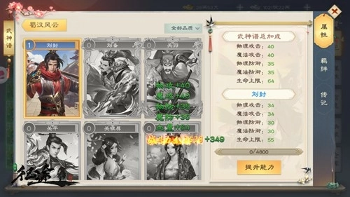 《绿色征途》武神谱是一个主打收集、养成的战力提升系统。现版本的武神谱中,共有5个品质的19位武神可供玩家收集。这19位武神收录于“蜀汉风云”,人物皆为刘备阵前的谋士、将领。可以预见的是,后续还将有更多的三国人物降临《绿色征途》世界,少年时代收集三国卡片的乐趣就要重现!