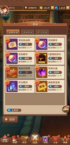 11、游戏中还有不少特色玩法,像公会福利、神秘商店这类内容都需要每日参与完成。建议大家有任务就及时去做,其中公会商店可以兑换英雄碎片,另外还有对应的符文、各类碎片以及装备等道具可供获取。