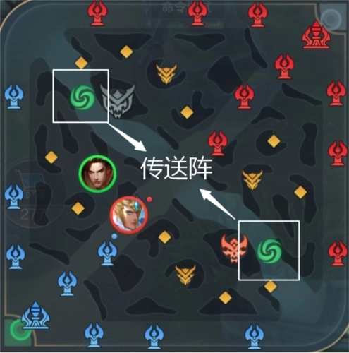 传送阵是连接上路和下路河道的捷径,可以快速跨越大半个地图,极快地对地图另一端进行支援和防守。