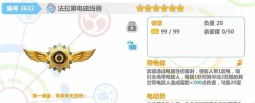 /当武器造成电属性伤害时,使敌人带1层电,吸引全场带电敌人,每隔一秒对其半径200范围的其它带电敌人造成层数×200点伤害,可叠20层/