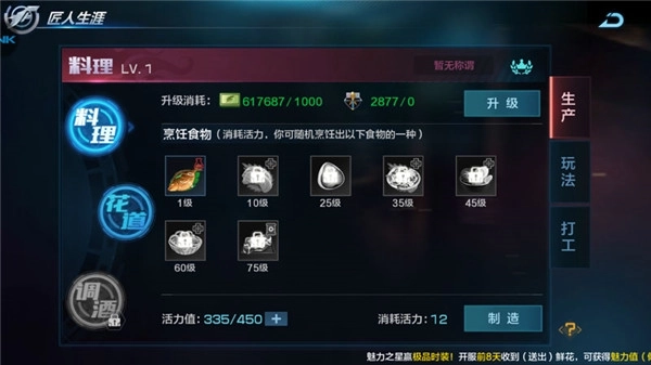 4、匠人生涯:匠人生涯分为三大板块,生产可以制造料理、培养幼苗等。