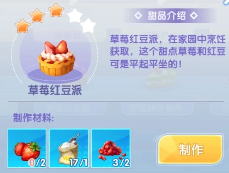首先呢,介绍一下我们制作甜食的材料,在进入家园后自动解锁红豆和草莓,之后随着家园等级每上升10级,会陆续解锁玉米、抹茶、玫瑰、菠萝、樱桃和蓝莓,这样就可以做出更多好吃的甜食了!