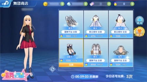 还有,我们舞团商城中还有个兑换商店,这里也是使用舞团荣誉值消费的哟!同样也是每天会在固定时间刷新的,但是这里是不能手动刷新的噢!而且每天兑换是有次数限制的!宝宝们兑换前可要三思哦!