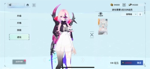 3、升格需要消耗同名角色,SR晋升为SSR要用到四个同名角色。不过升到SSR后就无法再进行升格操作了,得转而进行进化。进化的条件相对宽松,只要是相同稀有度等级的角色都能作为材料使用。至于后续进化的具体方向和不同级别,目前还不太清楚。