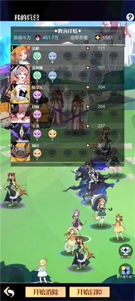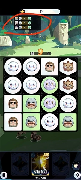 每次消除之后都会根据消除的结果召唤伙伴,当某种伙伴的数量达到战场可存在数量的上限时,之后消除该类型伙伴都会增加相应的形态值。