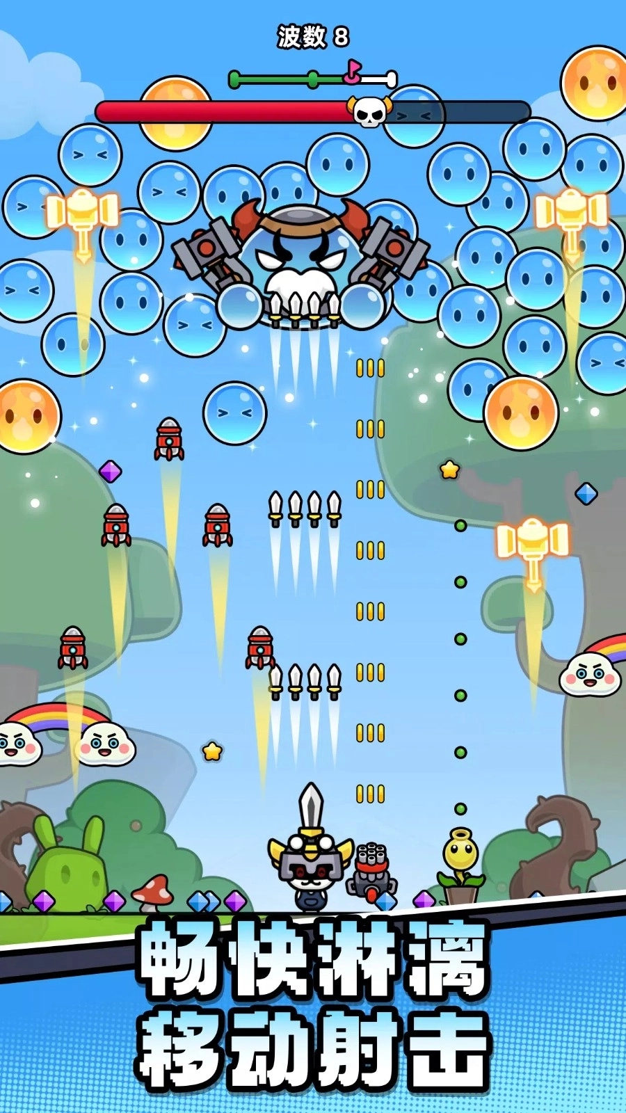 踏入充满奇幻色彩的《史莱姆必须死》世界,准备好迎接从各个方向弹跳掉落的顽皮史莱姆们的挑战吧!与强大的史莱姆首领一决高下,重新夺回属于人类的领地。这款轻松休闲的2D竖版射击割草游戏,将为你带来源源不断的乐趣与刺激体验!