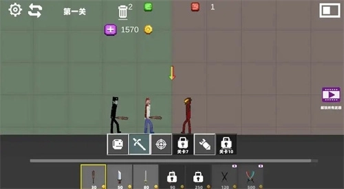 1、高度自由的玩法,提供了一系列资源,可自由打造武器;