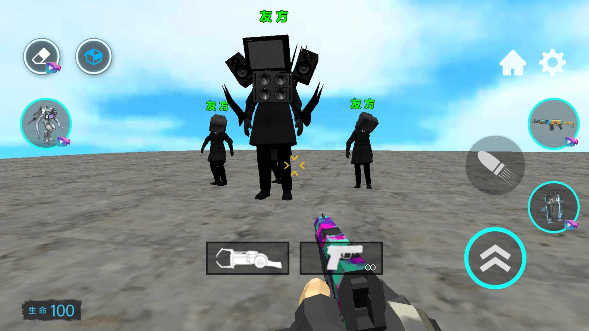 泰坦电视人战争是一款超经典的电视人战斗沙盒竞技类手机游戏,玩家需在沙盒世界中探索冒险,对抗大型电视人与泰坦人,利用武器快速战斗,挑战丰富副本地图,体验多样玩法。