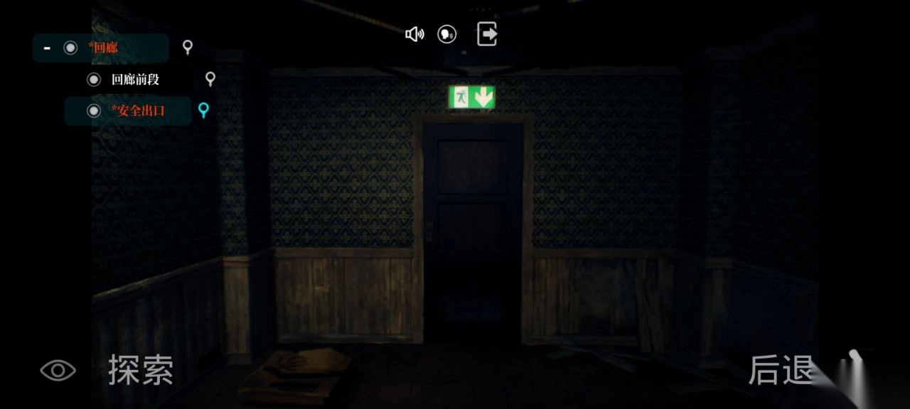 6、进入安全出口模式后,既可以点击左下角的探索按钮,也可以点击右下角的后退按钮。