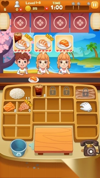 每一关都设有时间限制,玩家得在规定时间里为所有顾客提供服务,同时收集到足够数量的金币才能顺利通关。