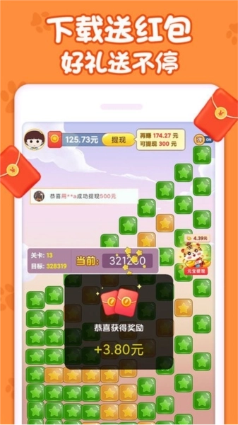 5.随着不断地通关,难度将会逐渐提升,红包的奖励也能不断地提升,轻松收获大量的红包奖励。